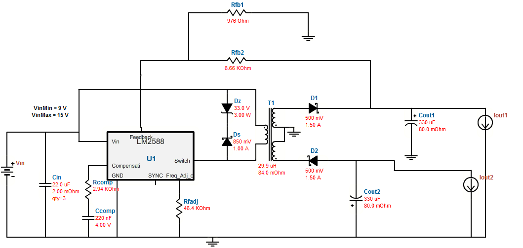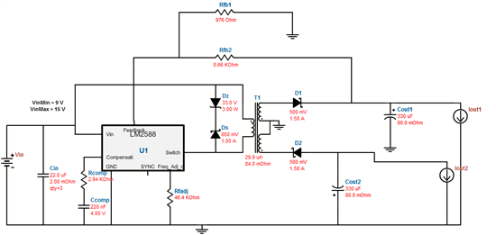 根据你的需求,下图为WEBENCH生成的设计。(如需隔离,只要改为隔离反馈。如果需要精确的-12V,可将-12V的线圈匝数略微提高,并在-12V之后加颗LDO)