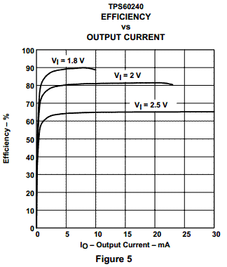 是会有您说的情况,电荷泵一般只在输入输出电压成整数倍的时候才达到最高效率,这是电荷泵的原理决定的,哪家的都一样。你可以把TPS60240等效为一个效率接近100%的两倍升压的电荷泵输出上一个LDO,你会发现和你的测试结果是一致的。