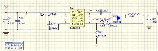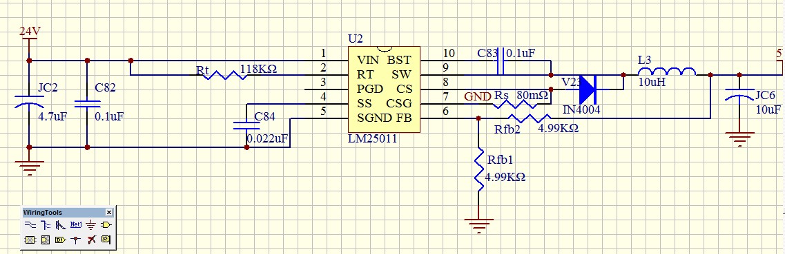 LM25011按照如下电路连接,上电VIN电压即开始下跌,类似于内部短路情况,求解,感谢。