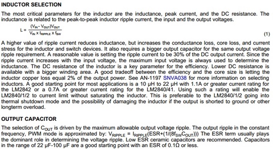 电感以及输出电容的选型计算可以参考datasheet P8的说明。根据输出以及输入的规格来设计合适的功率器件。