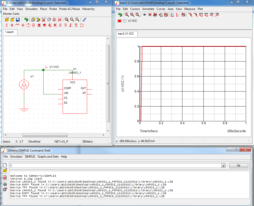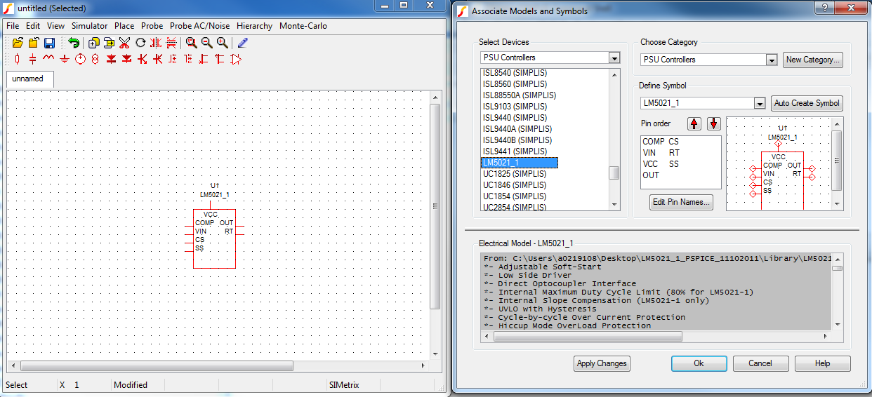 我从TI网站上下载的LM5021-1的Pspice模型。然后导入到SIMetrix中仿真。但是发现生成了3个symbol。一个是LM5021芯片,两个类似锁存器。这样仿真的时候单独使用LM5021 symbol可以实现芯片功能么。我看Pspice模型文件里有调用另外两个类似锁存器的子电路。
