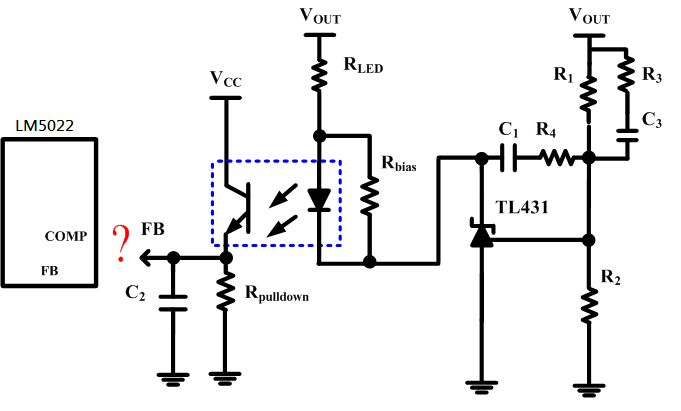 关于flyback用LM5022来做设计,再回授部分若已用隔离方式做补偿,那请问在IC的COMP及FB脚位接法该如何做设计?