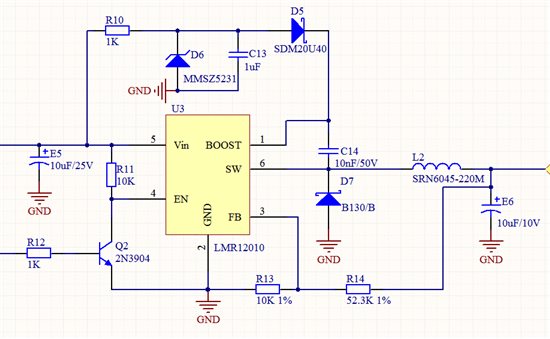 为什么我用LMR12010芯片,上电到得到预计的电压时间长达10多秒,是我那个元件用错了吗?是软启动的时间?可以减少这个时间吗?