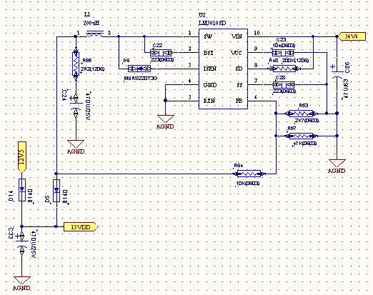 1. 输入电容C26的正引脚到LM5010的Vin脚需要加粗