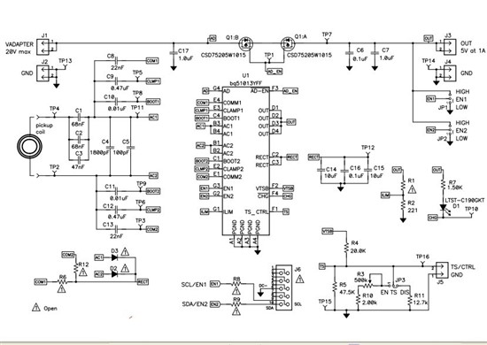 无线充电bq51013接收端接负载时,接收电感测试波形,电感的TP4,TP5两个端点测出来的波形不太一样,一个是类似正弦波波形,一个是规则的方波波形。这是为什么?请专家解惑一下,谢谢!