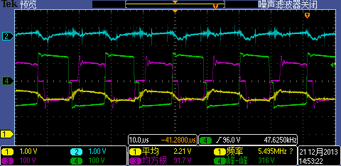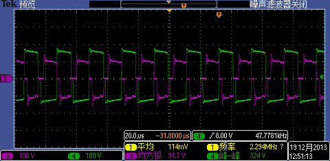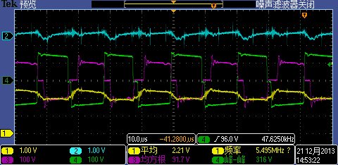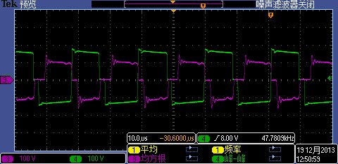 刚用UCC28950做电源控制芯片,现在补偿网络配置可能有问题,变压器初级线圈电压波形如下