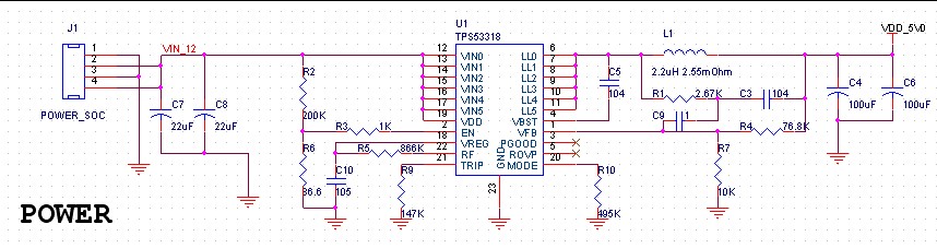 最近根据TI 的 WEBENCH ,针对工业控制主板,设计一款电源,电源设计负载电流最大6A,实际工作电流5A左右;在测试的时候出现这样的问题:当5V输出电流从2A左右上升到满载时,输出电压被迅速拉低导致芯片复位。