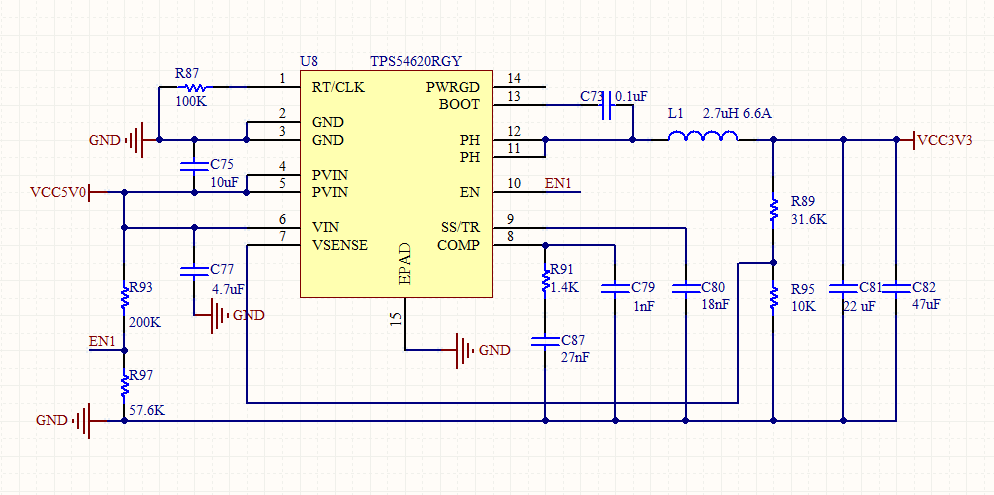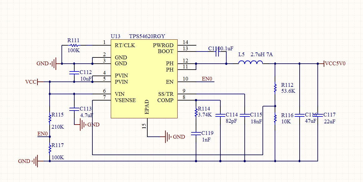 有一个问题你要注意,5V/6A输出, 电感选择7A是有点小的,建议饱和电流选择8A以上,否则6A输出时,可能导致电感饱和。