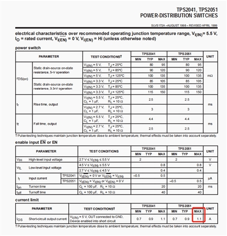 TPS2051: 短路输出电路测试输出超过手册数值,且误差较大