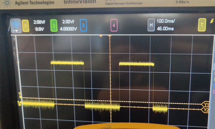 测试现象:现在在测试TPS2051USB限流芯片电路时(电路见下图左),在限流芯片7、1脚增加负载,发现负载电流已经增加到1.45A,/OC才开始由高电平变成低电平,且/OC电平开始来回切换(电平变化情况见下图右)