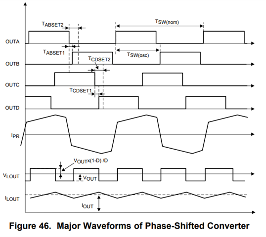 2.当D关断后D管Coss充电,C管Coss放电,C管两端电压下降,按照软开关设计,在CD管死区时间内C管电压应变为0(被体二极管钳位),根据手册给出的上述波形看,此时电流基本等于原边峰值电流;