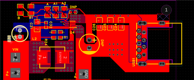 用TPS61022设计的升压电路。输入2.5-4.2v;输出5V但不能带载。1A放电,输出电压直接到0v。从0.1A升到1A,输出电压不会直接到0V但会一点点降低,当电流升到2A,输出电压会到0v。
