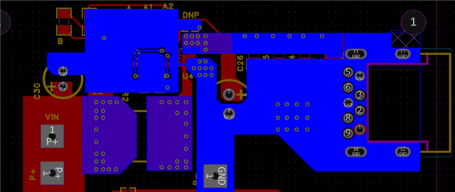 输入的GND走线没有做好,这里的电流很大的,走线太小,而且建议参照datasheet用2个过孔. (建议尽量参考datasheet, 功率回路尽量小)
