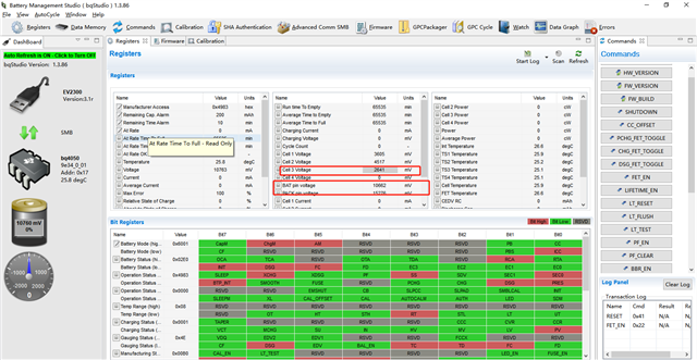 您好,其中一串2.6V,不平衡且所以打不开MOS。请确认电池连接是否正确。