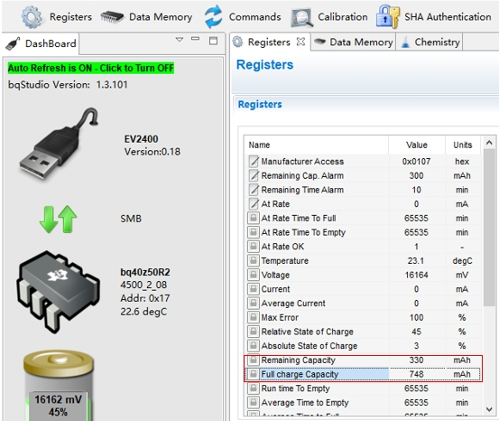 我已按照Ti给的电量计应用指导手册操作步骤操作,测试的满充容量只有748mAh,正确检测结果为14000mAh左右。导致的原因是否是哪里的参数没有设置好。