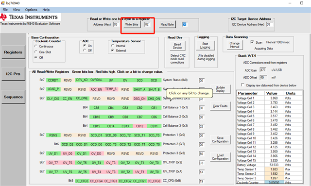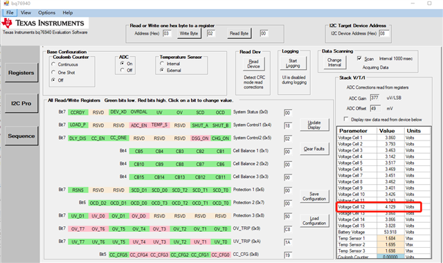 均衡问题:我通过bq76940的上位机看寄存器的值,Cell Balance123都是0,我写进去一个值,瞬间又变成0了,不进行均衡。