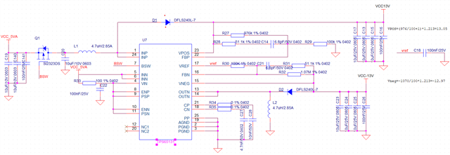 项目中用TPS65131搭建5V转±13V,电路如下: