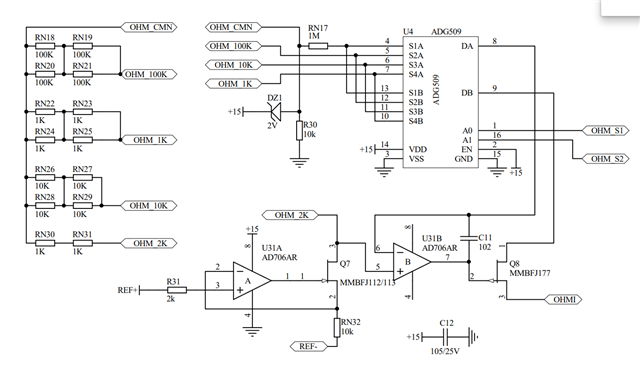 应用场合:替代万用表Agilent 34401A中的欧姆电流源的电路,用于测量二极管的正向导通电压;