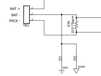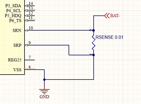 您好,在BQ34Z100 EVM的原理图中,Rsense是连接到了PACK-和BAT-之间,是PACK-连接外部负载或充电器的负极,这是电量计在电池端和电池组成的独立模块的设计。