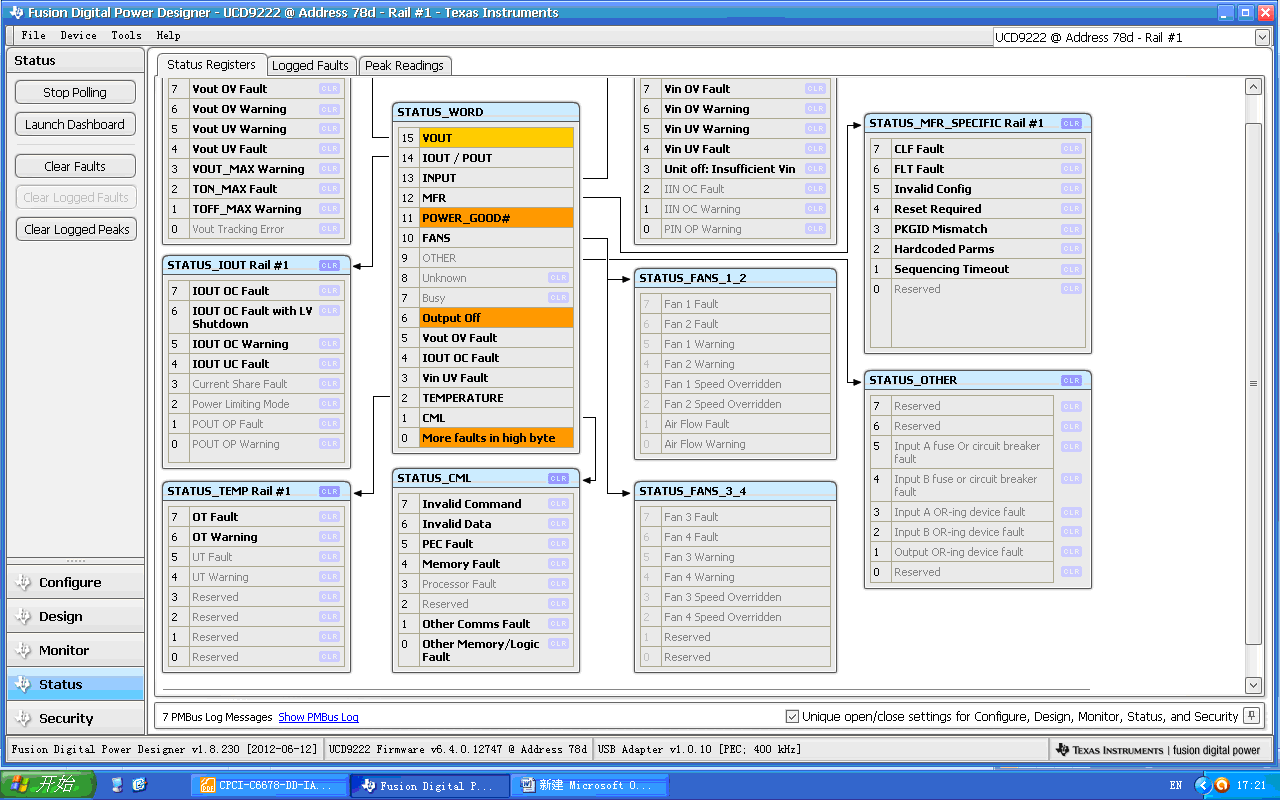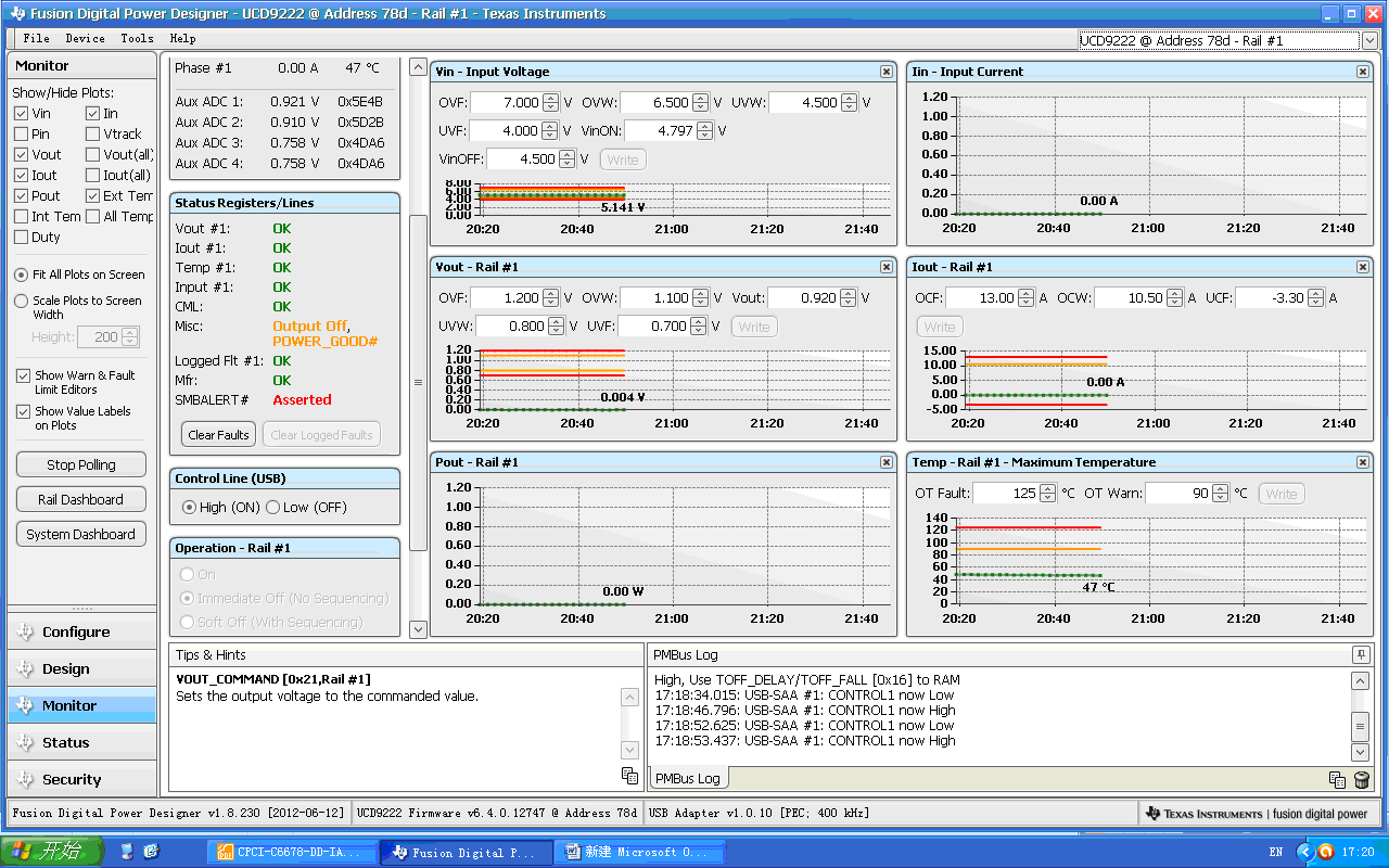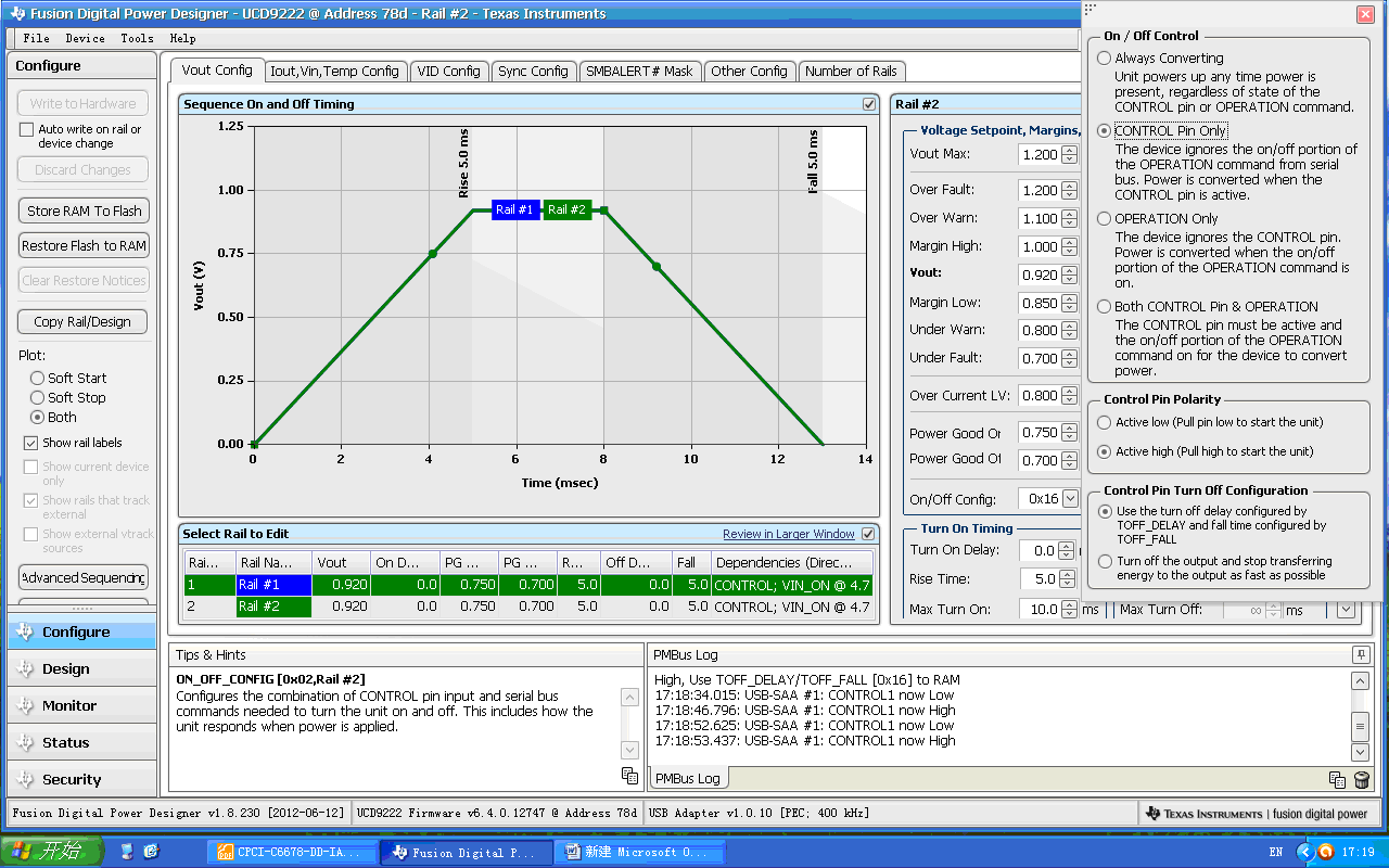 参考EVM6678板,用UCD9222+UCD7242给两片6678供1V核心电压,采用的EVM板的配置文件,配置如图;