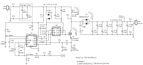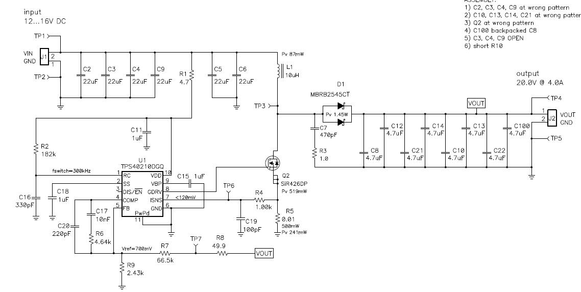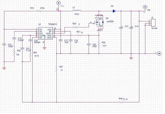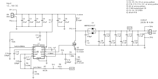 偿试把第三脚直接接到地,R23,短路,结果都一样,输入电压为11。8V,不带负载,电压会从12V左右慢慢升到输出电压为20V,左右,只要一带负载,哪怕是很小的负载,输出电压变成11。3V左右,好象是输入与输出之间直接通过二极管输出一样。GDRV,用万用表量测为0V,BP,脚为8.1V;SS脚为电压在1V内变化。PCB是两层板,我看EVM是4层。一直不知道是哪里原因,感觉IC没有工作一样。