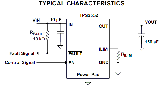 推荐一款 TI 公司的 TPS2552/53 和 TPS2552-1/53-1 电源分配开关, 该器件工作电压为2.5V到6.5V, 常用于需要精密限流或大容性负载与可能出现短路的地方. 设计非常方便, 仅通过一个外接电阻 Rlimi 在 75mA 和 1.7A 之间调整限流阈值. 这个电阻取值范围从 15KΩ到 232KΩ, 与限流阈值大体成反比关系, 限流精度达±6%. 并具有 2us 快速过流响应速度, 通过 FAULT 引脚输出状态, 由于是限流器, 当应用中发生过流或短路, 器件限制输出电流在阈值点, 所以过载因素撤除后会自动恢复. 当然还可以将 EN 引脚与 FAULT 相连, 让 FAULT 信号控制 EN 信号, 达到短路保护的功能.