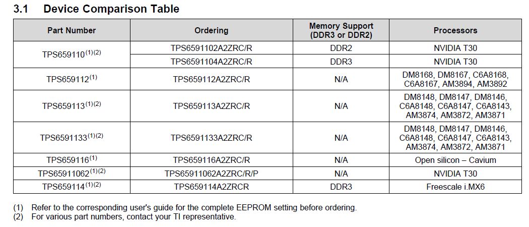 请教一下TPS6591133A2ZRCR and TPS659113A2ZRCR具体差异?? 似乎datasheet上面没有具体说明。有国外论坛上说是开机时序不一样。 请问是否可以解释一下具体的差异。 谢谢!!
