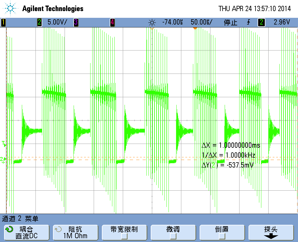 当然了,实际电路中,增加了一个C、R组成的缓冲,即SNUBBER。10nF+18R。一直在调试过程中都存在着。如果拿掉它,则会不能带载上电。