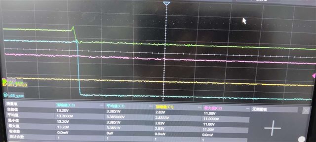 在使用LM25066A的过程中,出现了输出电压掉电,但是输入没有掉的情况。测量信号发现:P12V_BP上因为某些原因出现了一个波动,过冲达到了17V,持续时间380ns;此时,测量GATE信号发现GATE下降了2V多,如下图绿色信号所示,黄色是Power good;