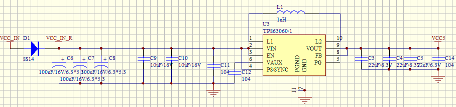 电路使用datasheet上的电路图。(Figure 34. TPS63061 5V Fixed Output Voltage)