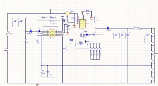 以下是电路图,先测试结果VDS 下降沿有抖动很厉害,且输出电压没有到200v。