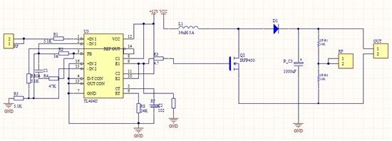 用TL494做升压电路,但供电就过流,这是什么原因,检查过没有短路现象,这是我的图,我们把14脚内部的5V基准通过电阻分压接到2脚和15脚,想问下TL494不接驱动可不可以直接接场管工作?