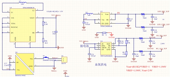 我的设计中有一个医疗用途的电池供电系统的需求,其供电部分原理图如图所示。