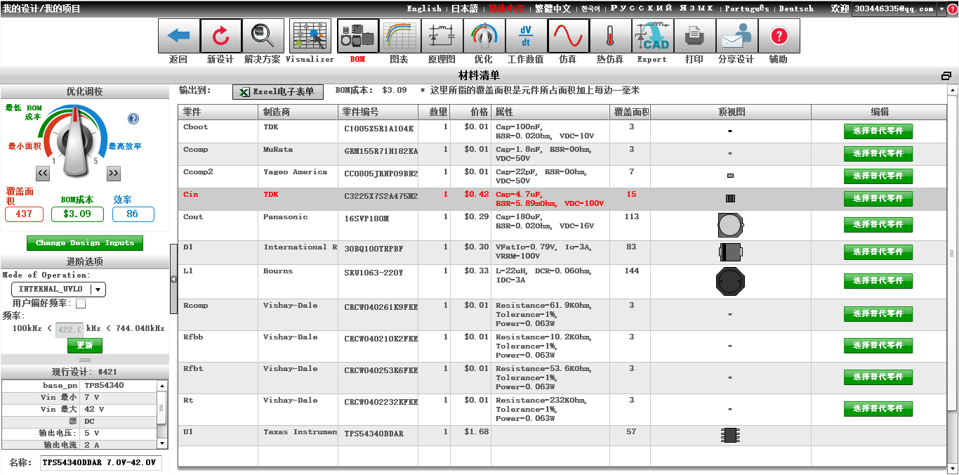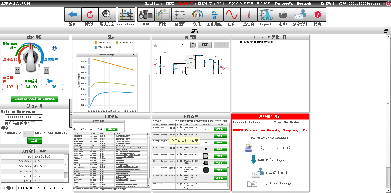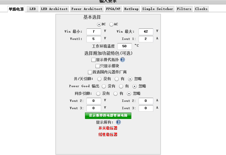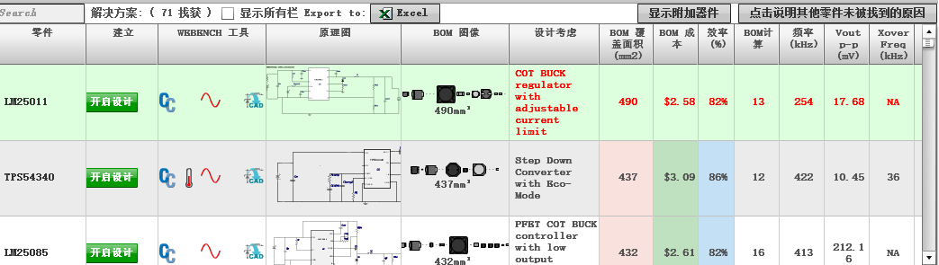 使用WEBENCH在线仿真分析工具,设计者可以在众多型号中选择合适的产品进行电路设计与