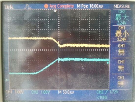 黄线就是,LP3876ED-ADJ的Vout 下降的部分。