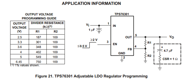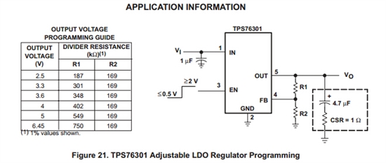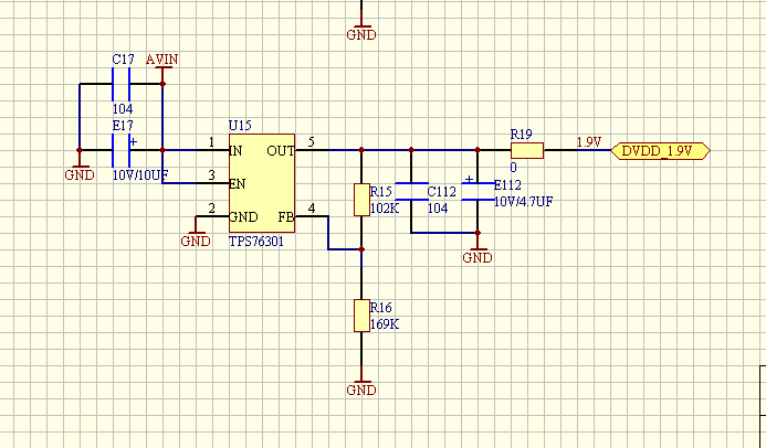 使用tps76301时,应该输出1.9V电压但是输出的是1.19V,为什么。电路是参考数据手册画的,取R2=169kΩ,R1=102kΩ