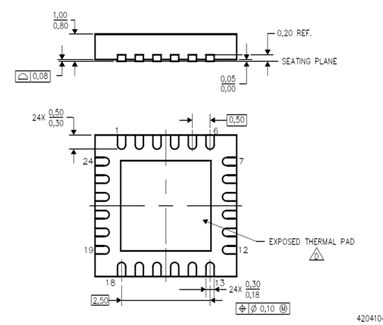 这个封装是QFN24的封装,在AltiumDesigner09中,系统自带了TI的封装库,里面就有QFN24的封装的。像这种通用性的封装,没必要自己画,而且自己画的有误差。