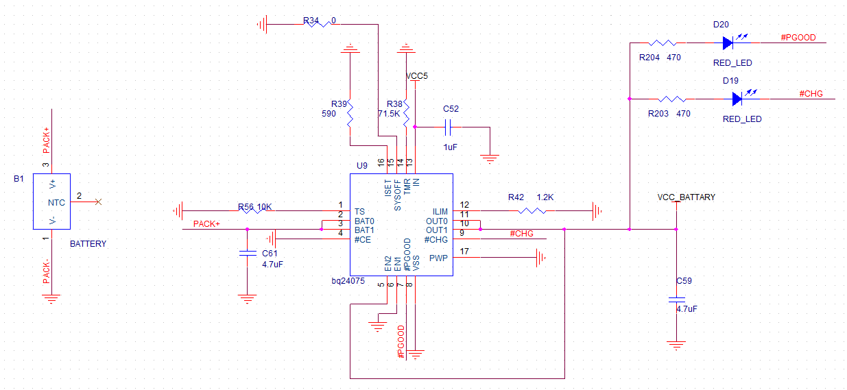 电路如图所示,VCC_BATTARY接上负载,当负载所需电流大于1.5A左右时,通过示波器观察,VCC_BATTARY立即掉电,而电池BAT端不会掉电,说明不是电池供电问题,但BQ24075手册上写到输出电流可以到5A,不知道以上现象是因为什么,请您解答,谢谢!