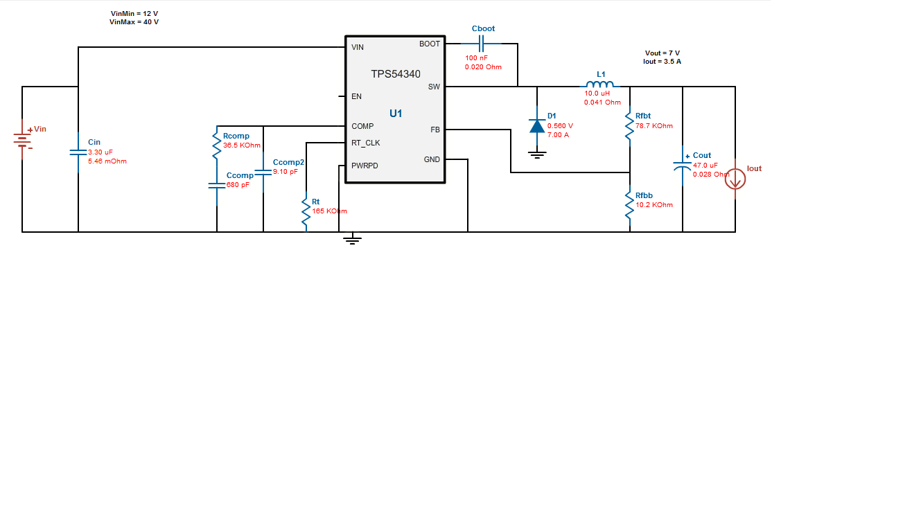 本人用TPS54340做了个降压电源 ,输入电压12V Rfbb为10K,Rfbt用100K滑动变阻器,按照芯片datasheet公式 ,输出应该是0.8~8V左右可调的 但是我的输出最多只能到5.2V,不知为何。其他参数变动不大,电路是可以带负载的!