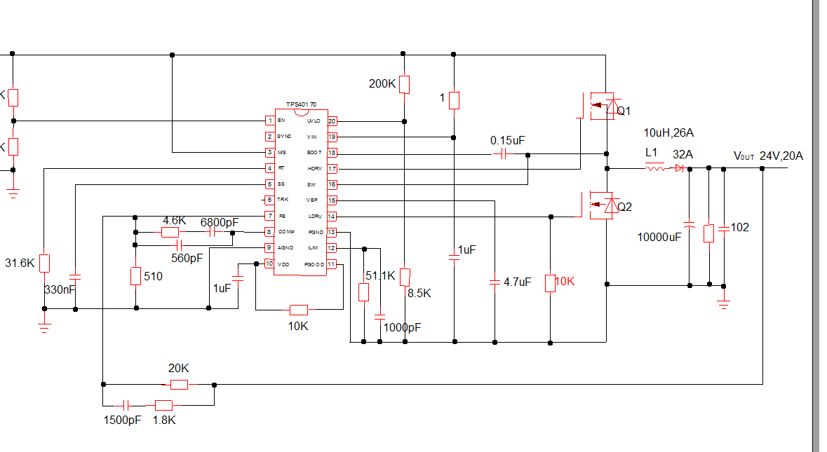 我要求这个电压输出是24V,通过调整反馈电阻达到,但是如果通过计算,我的输出电压应该是30V,为什么输出电压是24V?如果通过计算输出电压24V算出的的电阻,却达不到24V,是和输出反馈的位置由关系吗?在输出电容之后和之前由关系吗?