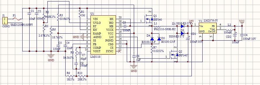 我用TI的方案 就是官网生产的原理图 做一个48V转36V的电源 可是没有输出 UVLO实测是2V EN是15v 实际原理图如下