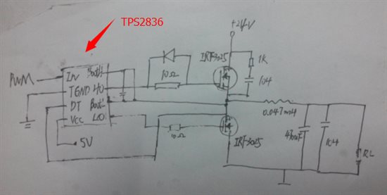 我这边用TPS2836搭了一个同步整流电路,第一次接触开关电源,电路不知道对不对,希望能给看一下。(TPS2836能用在非隔离的电路中吗?