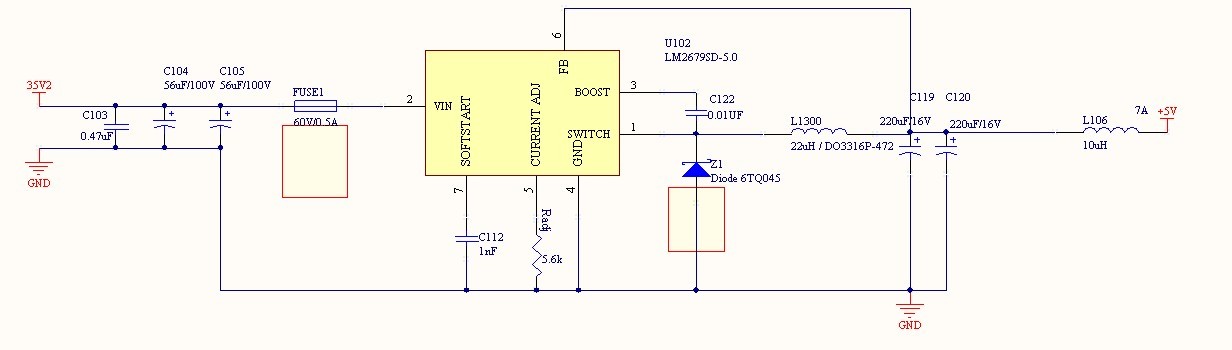 其次需要注意的是 LM2679-5通常设计最大输出电路是5A, 关于layout您可以参考www.ti.com.cn/.../snva013c.pdf 。
