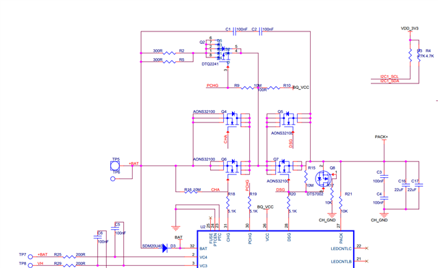 b.短路CHG-FET、DSG-FET(mos不受电量计CHG、DSG控制),测试以上操作,系统未出现断电现象;