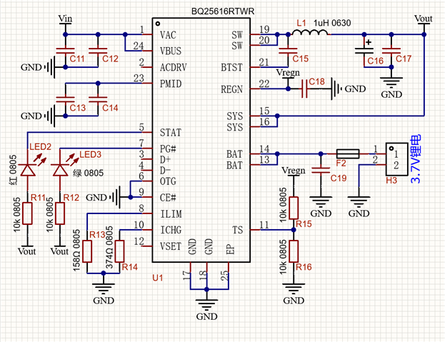 做了一个BQ25616的充电样板,接好聚合物锂电池,插上电源以后STAT灯一直在缓慢闪烁,电池电压没有上升。麻烦帮忙看下是什么原因
