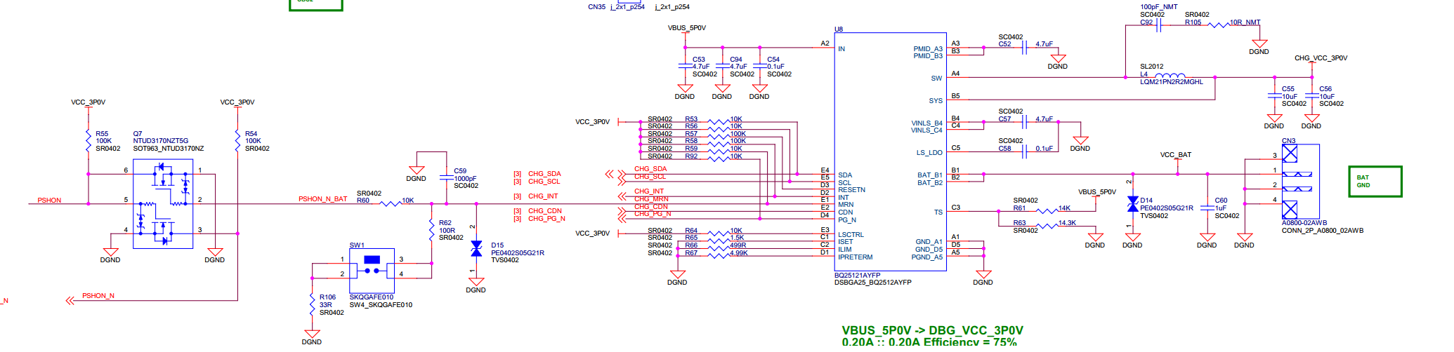 在上述状态下,通过按键拉低MR,Charger瞬间启动,但SYS输出为2.5V,并没有按照设定的3.0V输出。MCU启动之前/开机之初CD脚默认拉低。