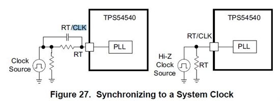 在“电源管理指南”中,54540和54340在“同步引脚”一列没有打钩,这个"同步引脚"是指外部时钟引脚吗?datasheet中明确有说支持同步到外部时钟。