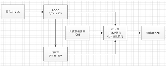 方案4: 直接输入3.7VDC 然后输出 25V(或者是18V~55V,之间的就行)AC。这是最好的了,不知道有没有这样的芯片啊?