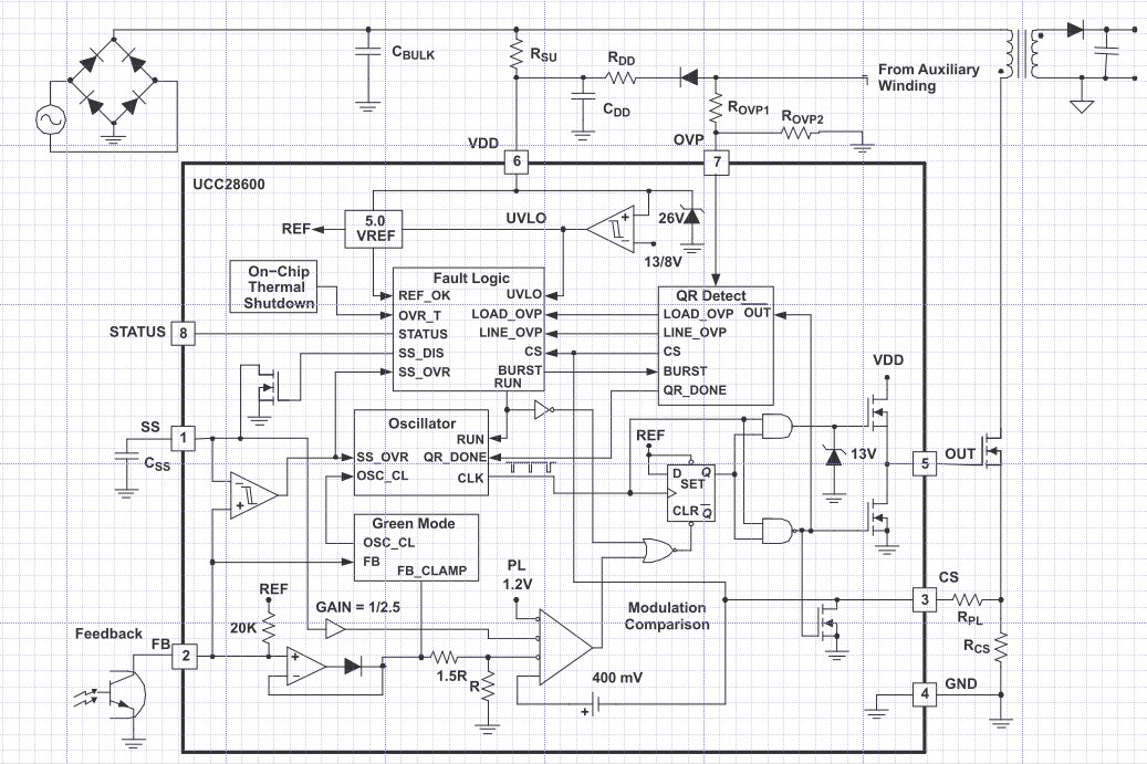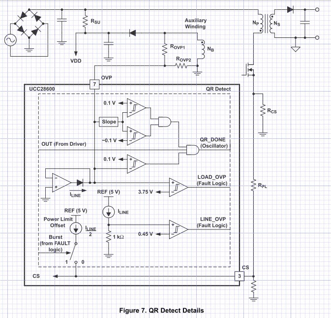 QR的波谷检测在7PIN处,该引脚还包含了OVP功能。