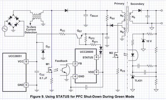 有些PFC IC就有控制脚,可以把UC28600的使能脚直接接到PFC的关停脚就行。以下是通过关闭PFC的Vcc来实现。